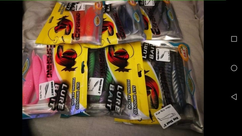 Super fluke type salted vinyl at a good price. They come in padded top and nicely presented. They appear to be of good quality. In the next few days I’ll test them with Texas assembly.