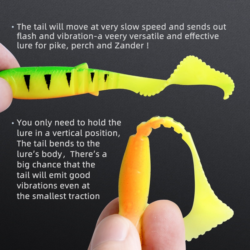 Quality soft lures with nearly no paint flaws. The orange parts are uv active. The twister tails are all nice and clean.
